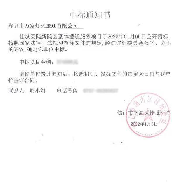 我公司在2022年1月就中標南海區桂城醫院整體搬遷項目。