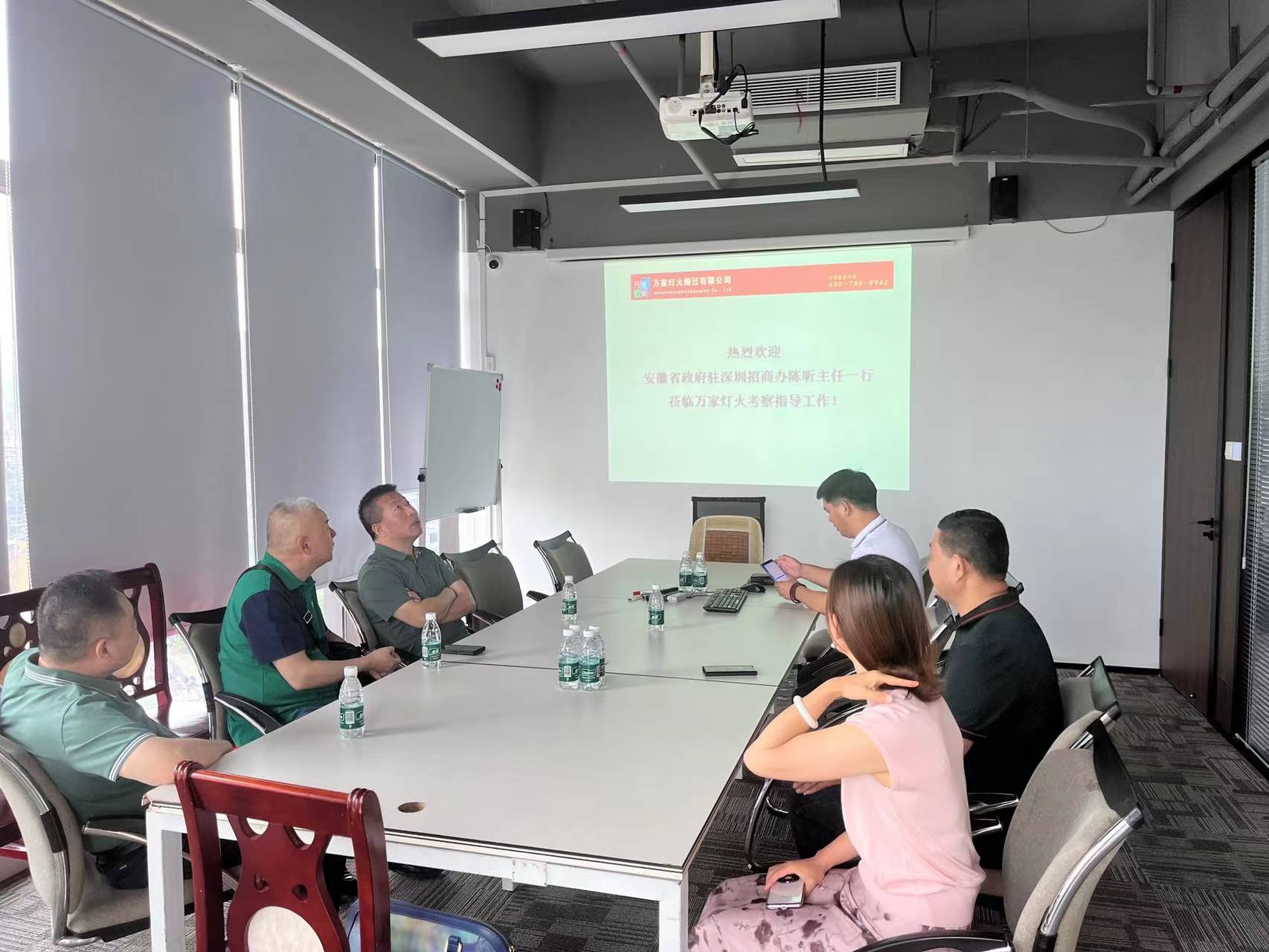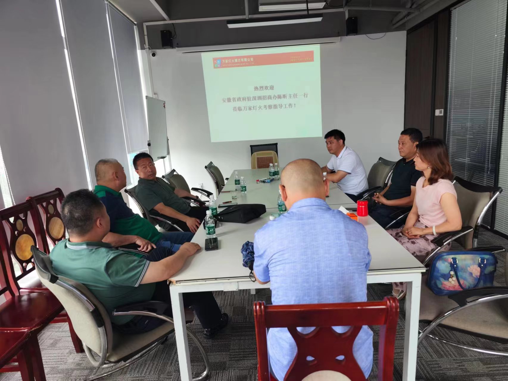 6月15日,安徽省政府駐深圳招商辦一行蒞臨萬家燈火搬遷有限公司考察,萬家燈火搬遷有限公司總經(jīng)理陪同。